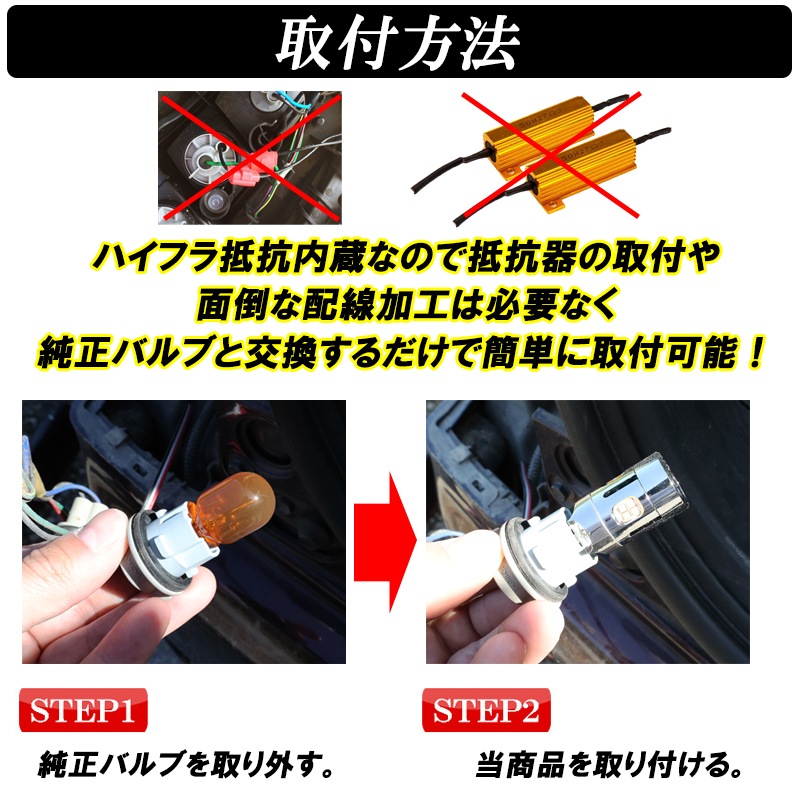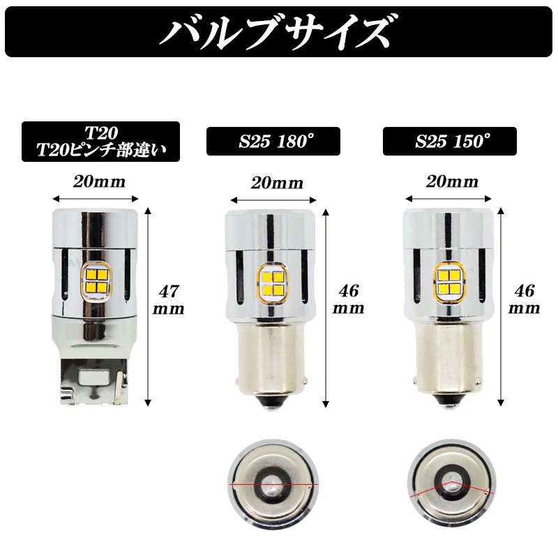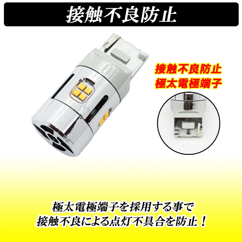 T20 S25 LED ウインカー 抵抗 内蔵 ステルス メッキ LEDウインカー ハイフラ防止 T20ピンチ部違い T20シングル 車検対応 ウインカーバルブ アンバー 12V 24V 1年保証 左右セット