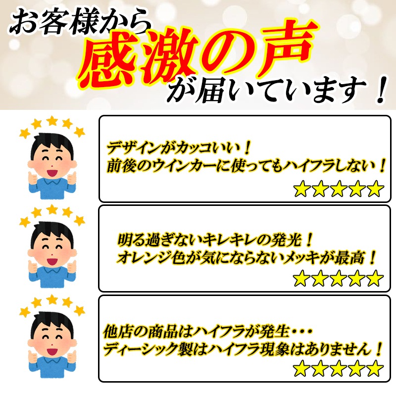 ◆待望のステルスLEDウインカー◆ 試行錯誤を繰り返し1年間の年月を得て誕生した最高峰のLEDウインカー! 高級感のあるデザイン性でありながら徹底したハイフラ対策を実現! ◆輝くメッキデザイン◆ バルブ全体をメッキで仕上げた高級感のあるLEDウインカー! 装着後はメッキリフレクターと同化するステルスカスタム対応! ◆ハイフラ防止!抵抗内蔵◆ LEDバルブにハイフラ防止小型抵抗器を内蔵! 別途抵抗器を取り付ける必要はなく、バルブ交換のみで取付完了! ◆冷却電動ファン◆ 先端に高性能な冷却電動ファンを搭載する事で内部に熱を溜め込まない! 高い放熱性を実現する事で耐久性も向上! ◆高性能ハイフラ防止ウインカー◆ 内部の精密部品の品質向上、放熱性の向上を図る事でハイフラを起こさないLEDウインカーが誕生! 従来モデルの課題を解消した贅沢な最新モデル! |