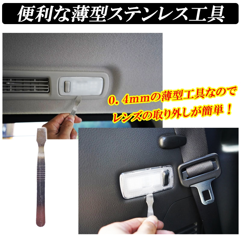 フロントルームランプ×2 リアルームランプ×1 ステンレス工具×1 |