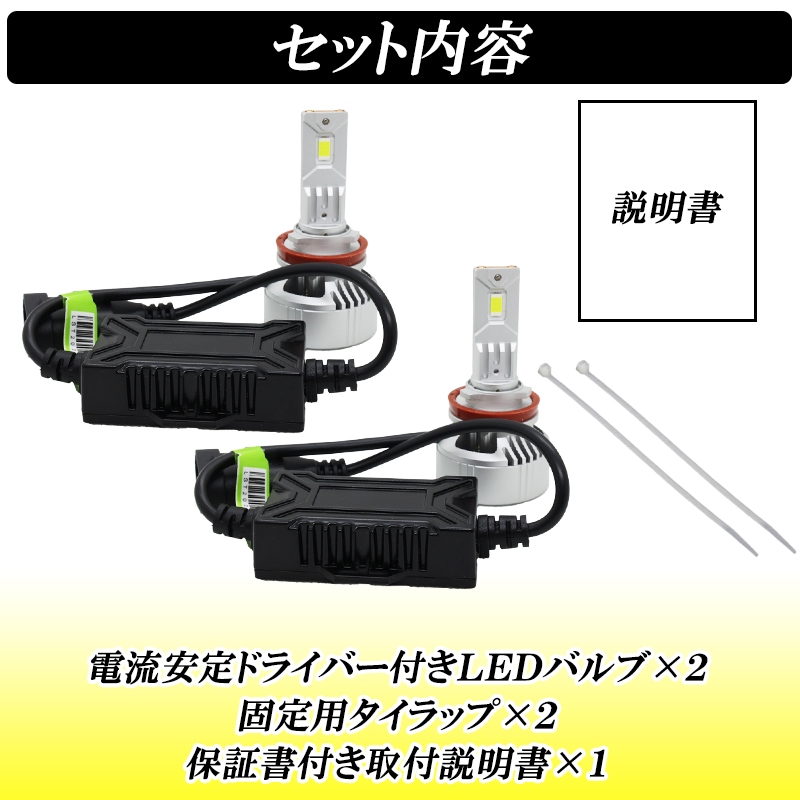 電流安定ドライバー付きLEDバルブ×2 固定用タイラップ×2 保証書付き取付説明書×1 |