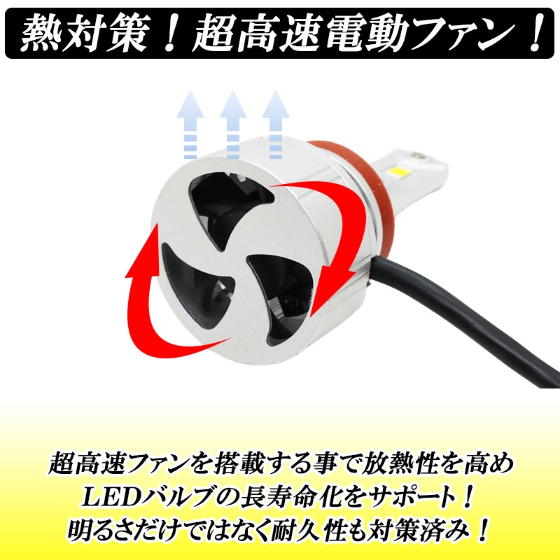 ◆新世代の爆光LEDバルブ◆ 従来品から発光力、耐久性を大きく向上した新型モデルが誕生! 専門店が認める高い発光力と長寿命の耐久性! ◆最先端LEDチップ搭載◆ 発光力の高さだけではなく広角性や耐久性も兼ね備えたLEDチップを採用! 明るさ、発光色、発光範囲、全てにおいてトップクラス! ◆高耐久性設計◆ 熱伝導性の良い銅パイプをLEDチップの側面に配置する事で放熱性を向上! さらに電動冷却ファンで効率良く放熱する事で爆光をサポート! ◆角度調整機能付き◆ LEDバルブを取り付けた状態で簡単に発光点の角度調整が可能! 発光点を合わせる事で暗闇にも負けない爆光が実現します! ※PSX24W、PSX26Wは調整不可 |