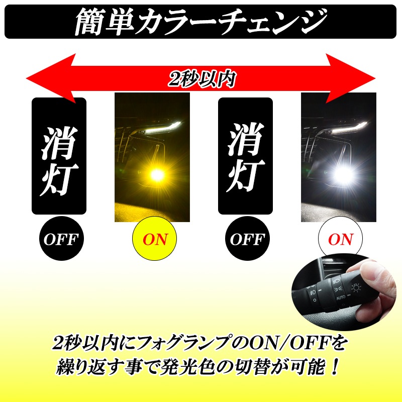 LED フォグランプ 2色切り替え メモリー機能 L1B 爆光 イエロー ライムグリーン アイスブルー ウォームホワイト トヨタ 新型 40系 アルファード ヴェルファイア 80系 ハリアー 200系 ハイエース 8型 7型 ヤリス ヤリスクロス 7800LM 車検対応
